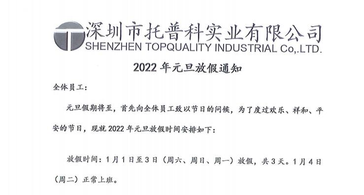 2021的尾聲即將走完,2022年即將到來(lái),深圳托普科實(shí)業(yè)2022年元旦放假安排如下