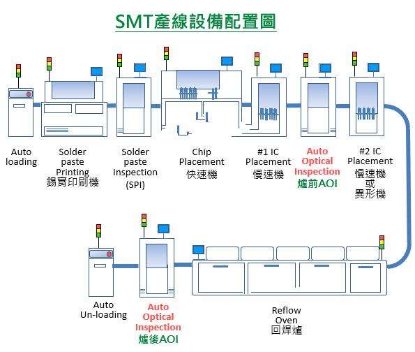 6.檢測(cè):其作用是對(duì)組裝好的PCB板進(jìn)行焊接質(zhì)量和裝配質(zhì)量的檢測(cè)。所用設(shè)備有放大鏡、顯微鏡、在線測(cè)試儀(ICT)、自動(dòng)光學(xué)檢測(cè)(AOI)延伸閱讀:什么是AOI?詳解自動(dòng)光學(xué)檢測(cè)設(shè)備aoi、X-RAY檢測(cè)系統(tǒng)、功能測(cè)試儀等。位置根據(jù)檢測(cè)的需要,可以配置在生產(chǎn)線合適的地方。