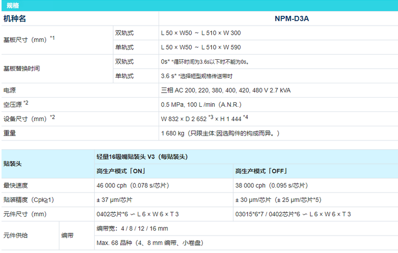 NPM-D3A多功能貼片機(jī)改善點(diǎn): 元件識(shí)別動(dòng)作時(shí)同時(shí)驅(qū)動(dòng)X-Y軸,通過選擇最佳路徑,從而提高貼裝速度。 驅(qū)動(dòng)控制的進(jìn)化,縮短X-Z軸的移動(dòng)時(shí)間,從而提高貼裝速度。 改善微小元件的吸附計(jì)算方法,提高實(shí)效生產(chǎn)率